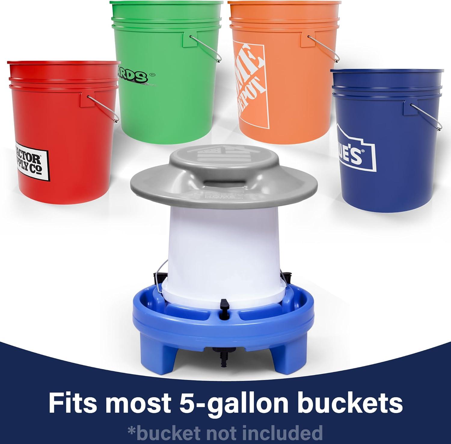 American Home Self-Filling Farmstead Chicken Feeder, 30 lb Capacity, Fits Standard 5-Gallon Bucket, Outdoor Weather-Resistant Design(Blue)
