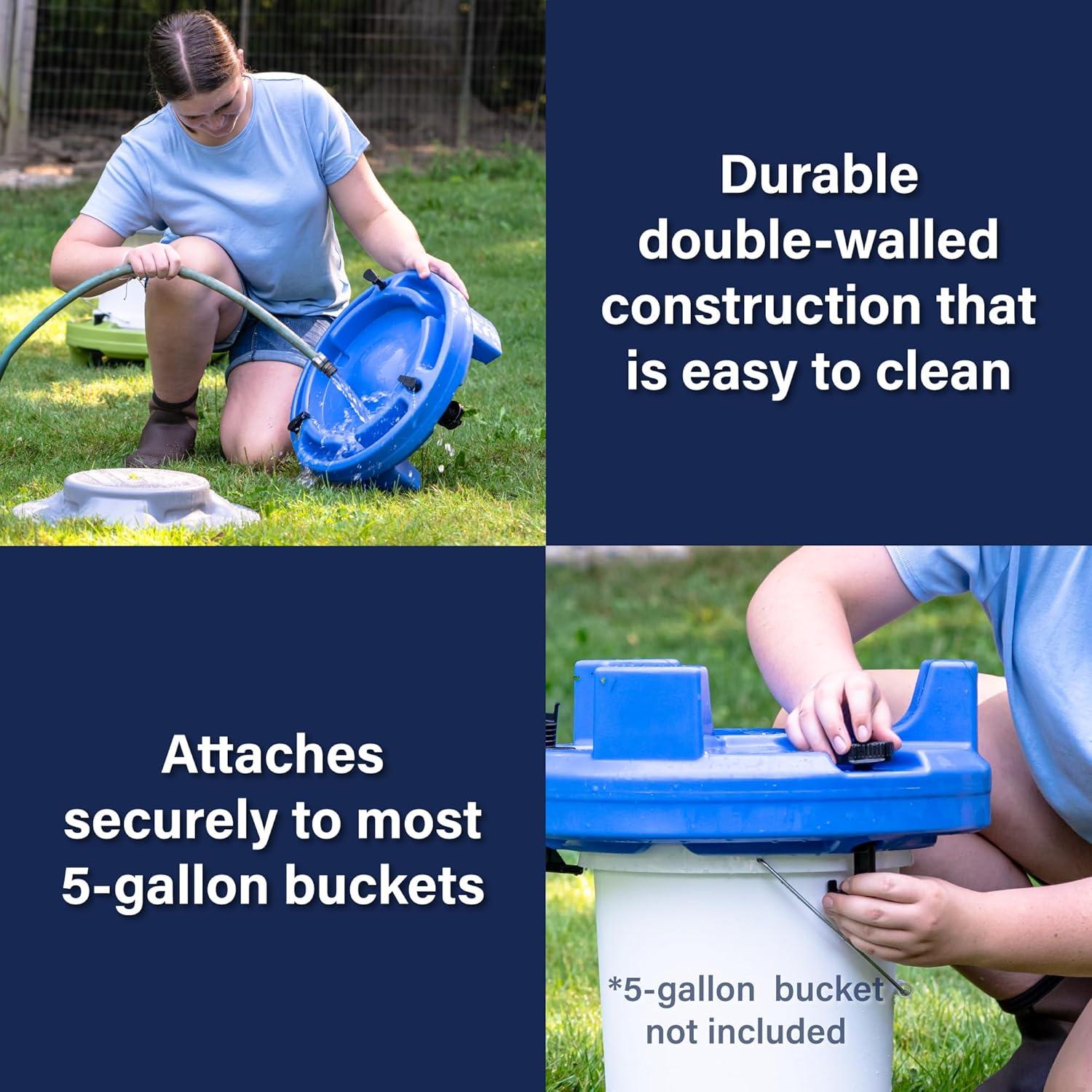 imageAmerican Home SelfFilling Farmstead Chicken Feeder 30 lb Capacity Fits Standard 5Gallon Bucket Outdoor WeatherResistant DesignBlue
