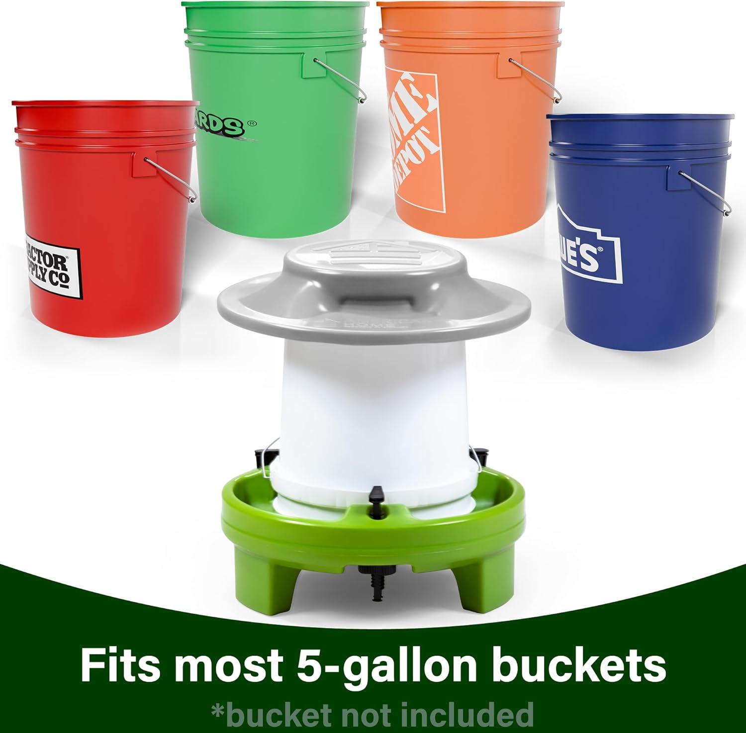 FITS STANDARD BUCKETS: Designed to work seamlessly with most standard 5-gallon buckets (bucket not included), the chicken coop feeder offers quick setup and easy replacement options so you can start feeding right away