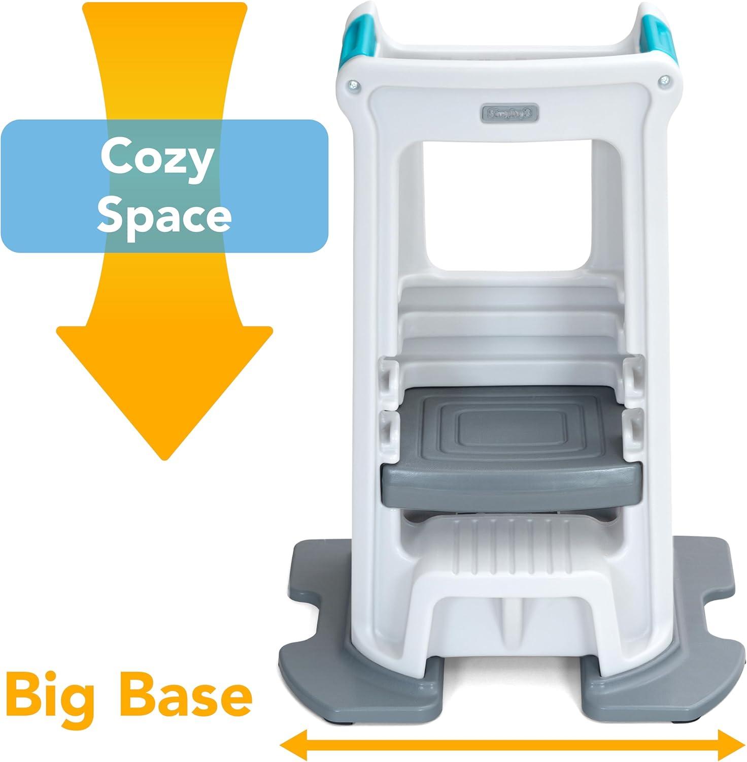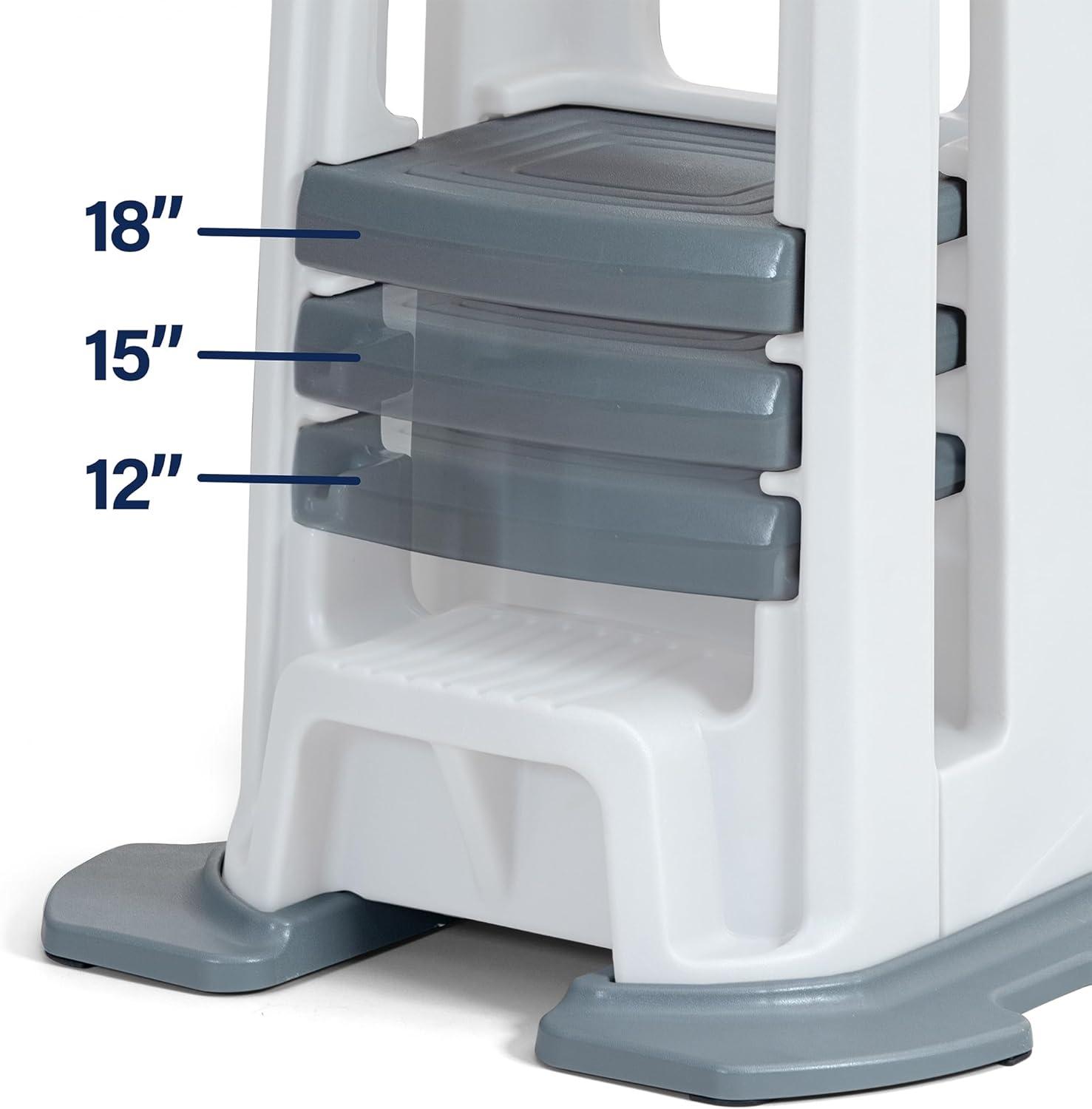 Simplay3 Toddler Tower, Montessori Folding Kids Step Stool for Kitchen, Bathroom, 34” x 21.5" x 20”, Ages 18 Months to 4 Years, Gray(White)