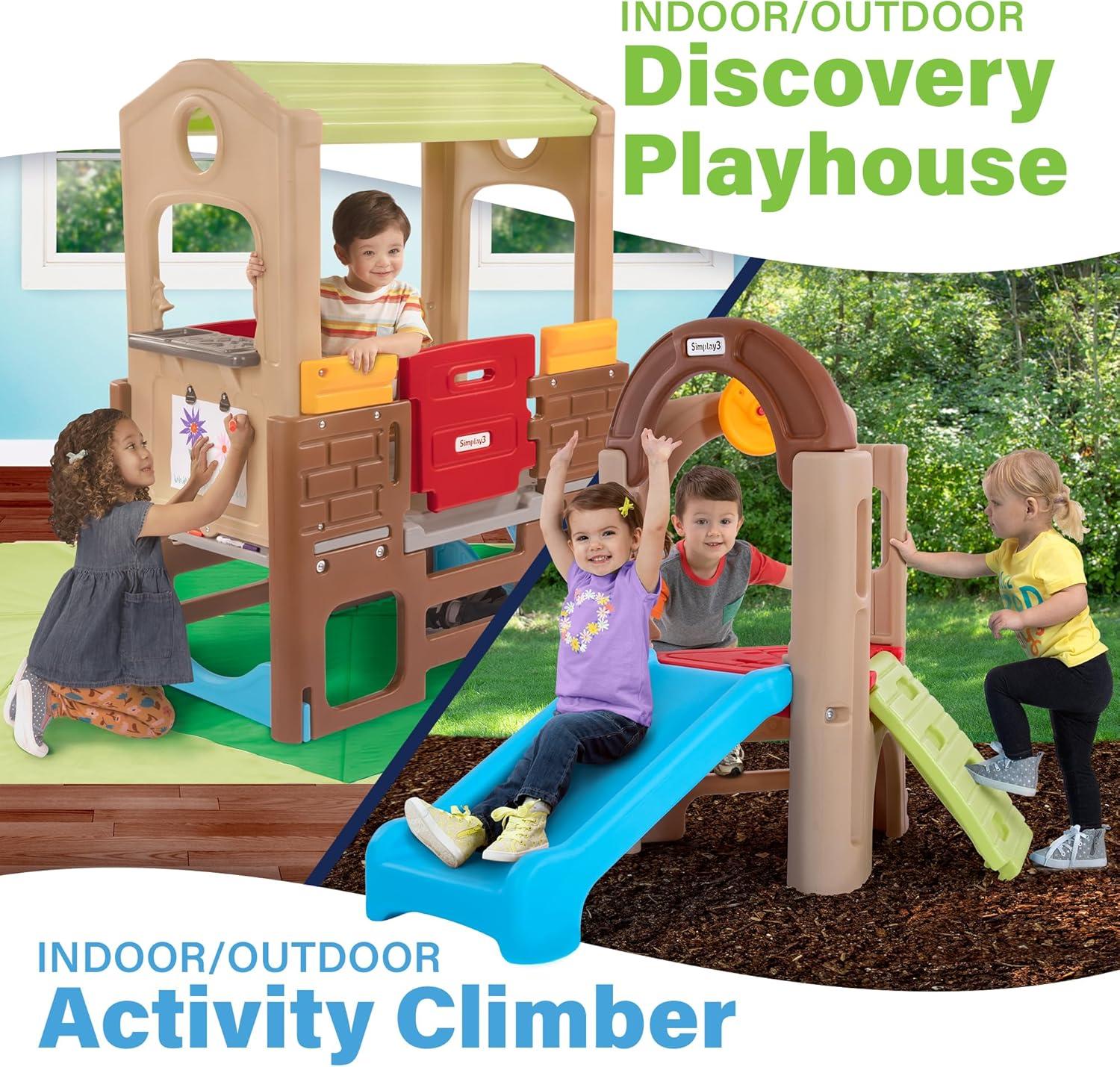 Simplay3 Young Explorers Indoor Outdoor Playset for Kids – Modular Climber, Slide & Playhouse Combo – Expandable Toddler Activity Center with Crawl Tunnel, Doors & Easel for Backyard or Playroom(Modular Play System)
