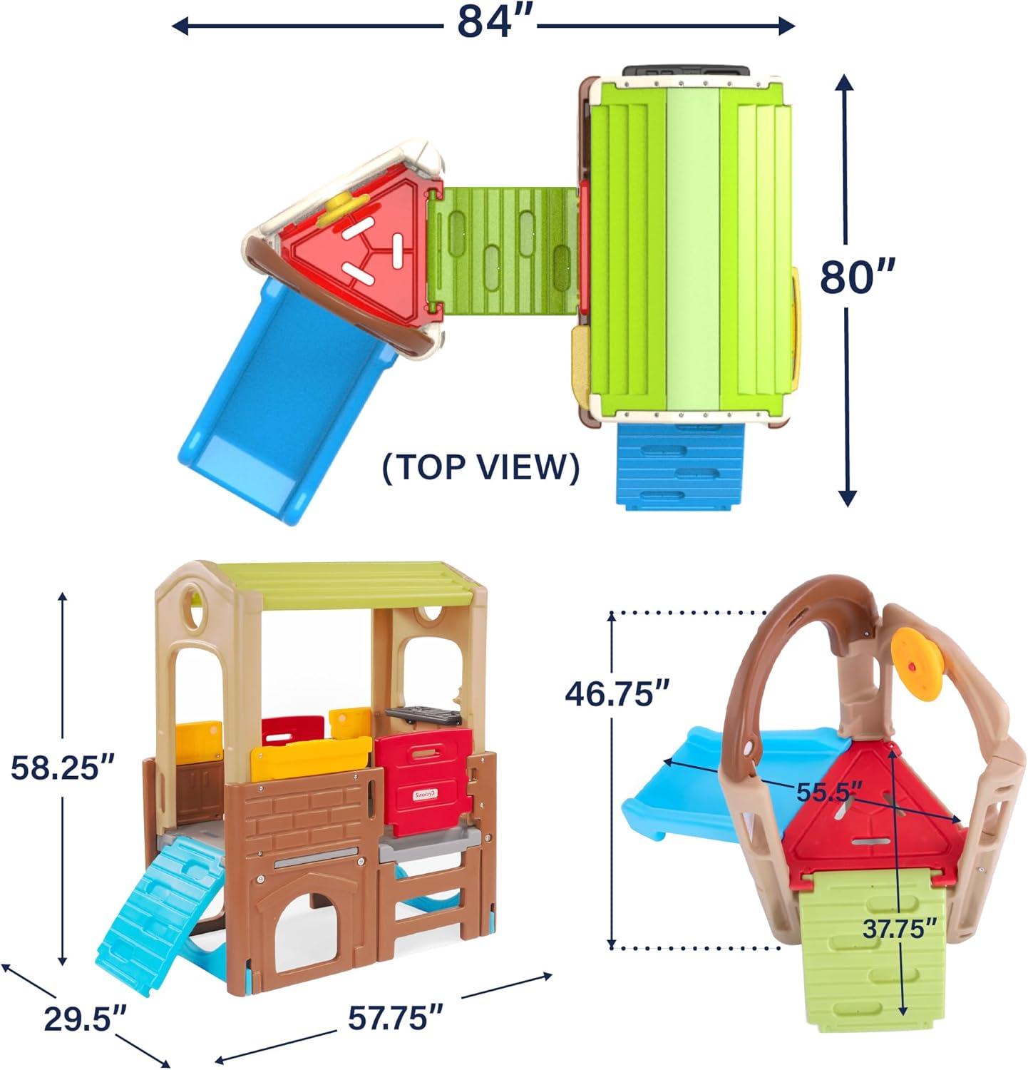 FUN FEATURES: Loaded with fun activities to keep kids playing all day. Includes a slide, steering wheel, climbing ramp, ladders, bridge, play kitchen, dutch doors, roof tops for shelter, crawling tunnel spaces, a drawing easel and mail slots