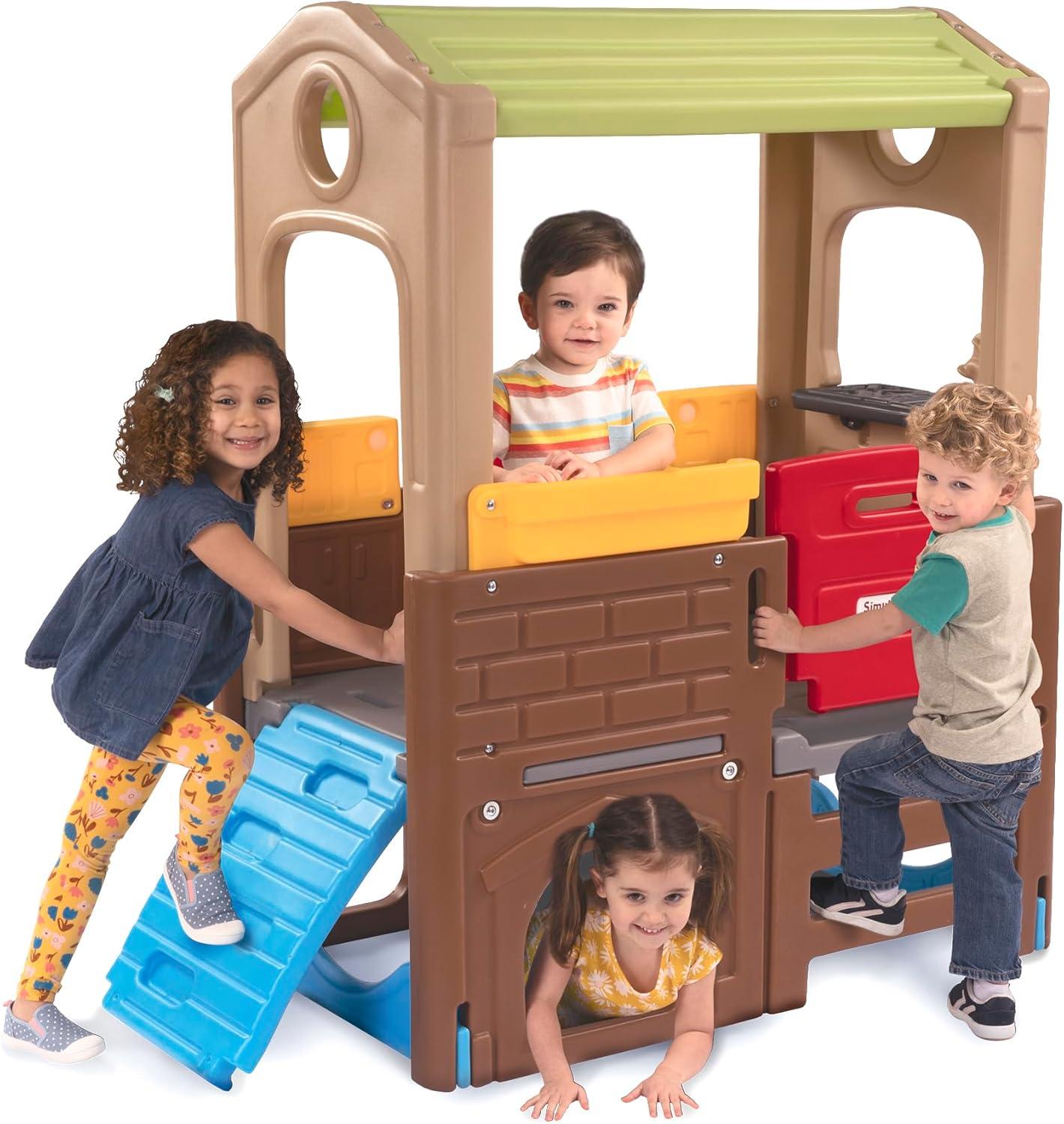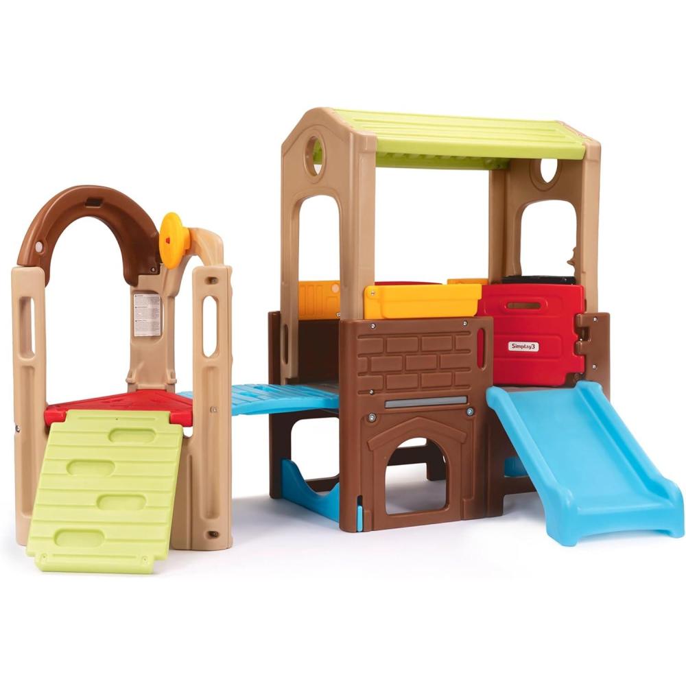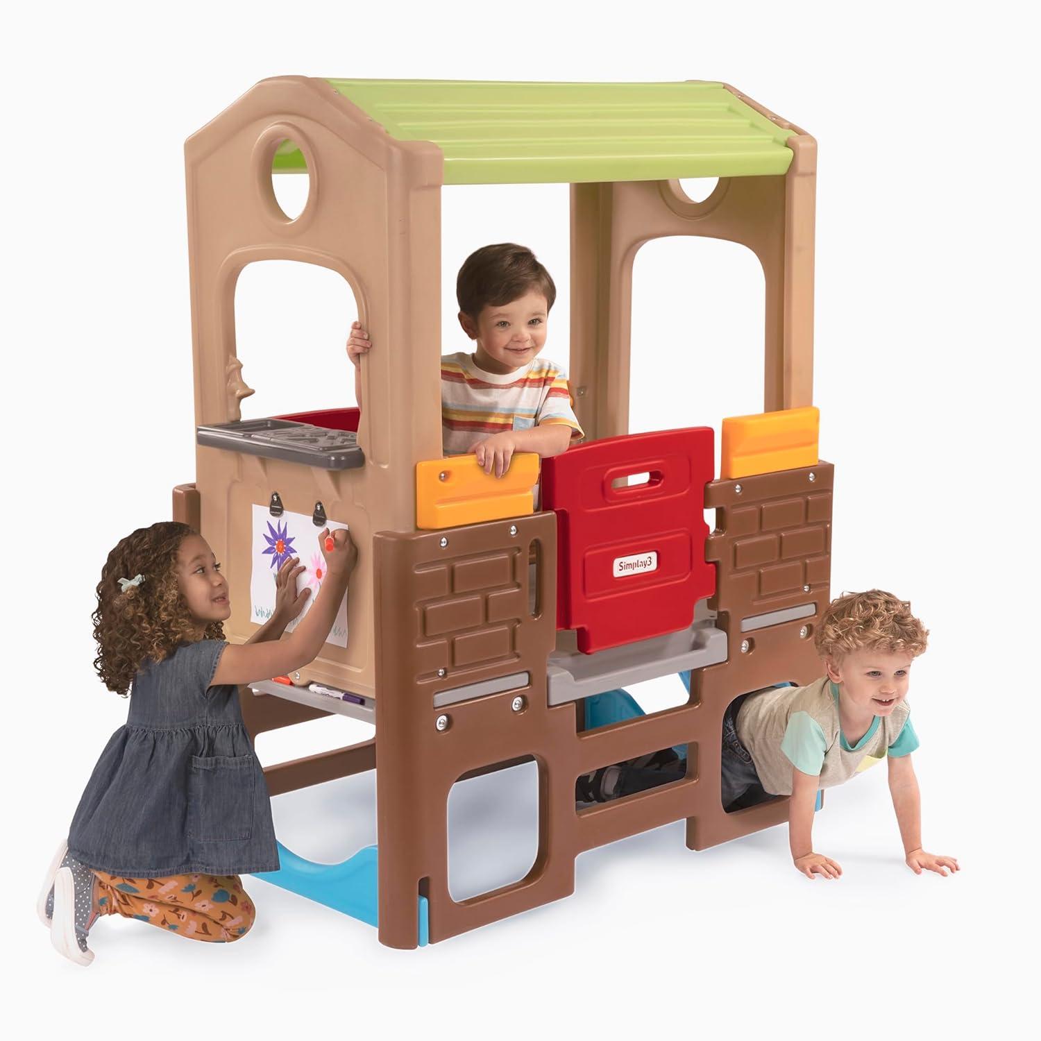 Simplay3 Young Explorers Indoor Outdoor Playset for Kids – Modular Climber, Slide & Playhouse Combo – Expandable Toddler Activity Center with Crawl Tunnel, Doors & Easel for Backyard or Playroom(Playhouse Modular)